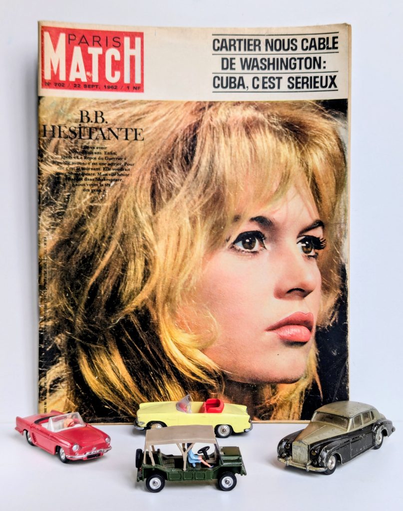 Brigitte Bardot, Bardot, Brigitte Bardot, Bardot chantait Dario Moreno en 1962, version française d’une samba brésilienne entonnée deux ans plus tôt en VO-Rio. Brigitte Bardot, Bardot, béjo, béjo. Au début des années 1960, BB est la plus grande star du cinéma français. Connue dans le monde entier, elle danse, elle chante et suscite des milliers d’imitations. Choucroute blonde, ballerines Repetto et jupons vichy: son look est copié par toutes les filles. Chaque pays revendique sa Bardot, pourvu qu’elle soit blonde, boudeuse et sexy. Le plus souvent vue d’avion.